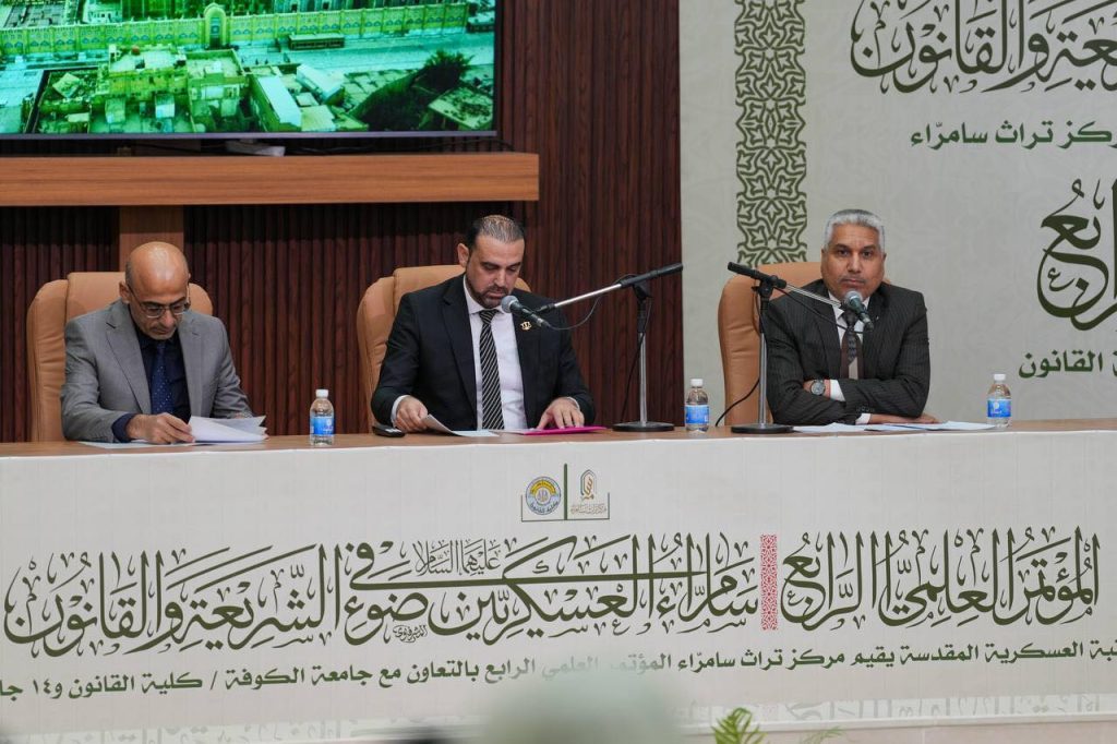 في رحاب مدينة العلم والعلماء النجف الأشرف، وعلى قاعة كلية القانون بجامعة الكوفة، انطلقت فعاليات الجلسات البحثية للمؤتمر العلمي الرابع الذي تُقيمه العتبة العسكرية المقدسة، مُمثَّلةً بمركز تراث سامرّاء، بالتعاون مع كلية القانون في جامعة الكوفة، والمنعقد هذا العام تحت شعار: «سامرّاءُ العسكريَّين (عليهما السلام) في ضوء الشريعة والقانون».