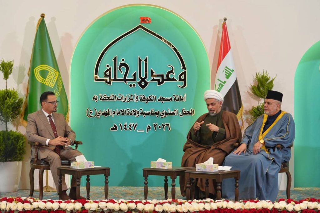 شارك وفد مركز تراث سامراء في احتفالية ولادة الإمام المهدي المنتظر (عجّل الله فرجه الشريف)، التي أقامتها أمانة مسجد الكوفة والمزارات الملحقة به، بحضور شخصيات دينية وثقافية وجمعٍ من المؤمنين، تأكيدًا لحرص المركز على الحضور الفاعل وتعزيز التواصل في إحياء تراث أهل البيت (عليهم السلام) وترسيخ القيم الإيمانية.