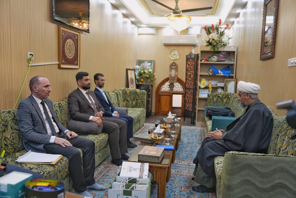 زار وفدٌ من مركز تراث سامراء رئيسَ قسم الشؤون الفكرية والثقافية في العتبة الحسينية المقدسة الشيخ علي عبد زيد القرعاوي، وبحث الجانبان خلال اللقاء سُبل تعزيز التعاون الثقافي وتبادل الخبرات في مجالات حفظ التراث ونشره.